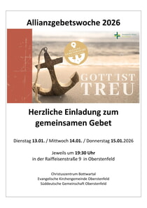 Das Gebet für den Frieden findet mittwochs um 18.30 Uhr im Gemeindehaus statt.